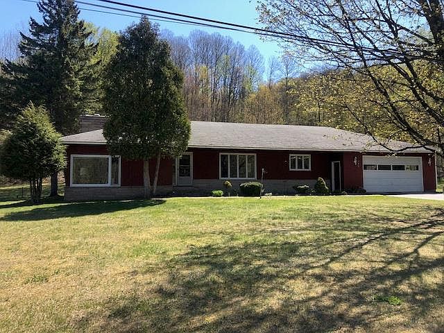 Great location just outside the Village of Malone! This mid-century, contemporary age & style 1856 square foot ranch has approximately 660 square feet finished in the basement. Three bedrooms, and 1.5 bathrooms, and a large sunken living room (with fireplace) on the main floor. Woodmode kitchen, and cedar closets throughout the home. Two car attached garage. All situated on a nice 1.38 acre lot with 213 feet of frontage on the Salmon River. A must see!
