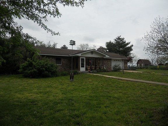 PRODUCTIVE MINI-FARM is only 3 miles from town on country paved road, but the house is tucked back into a private setting, hardly visible from the road. 40 acres m/l w/ good pasture & hayland,nice ponds,a small barn w/ loft,& several misc.outbuildings,& a detached 2-car garage also offers a quality brick 3 bedroom, 2 bath home w/ attached garage, fireplace, central heating (wood & LP)window unit