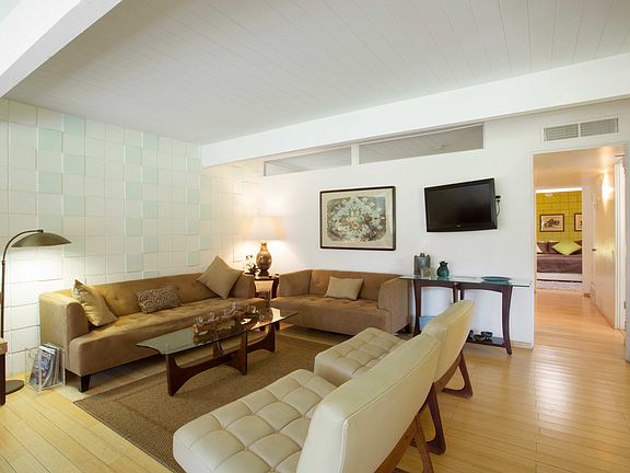Step in to this fully remodeled and modern condo and you?ll fall in love! Only steps from El Paseo, this condo features granite countertops, wood floors throughout, office space and lots of natural light. Have drinks out on the terrazzo covered patio with a relaxing fire and enjoy the views of the San Jacinto mountain each evening, or take a dip in the sparkling heated pool. Once you get to this beautiful location you won?t want to leave! Seasonal Vacation Rental - Check Availability and seasonal rates at: www dot luxboxvacationrentals dot com and search for Sandpiper Mid Mod Escape Seasonal Vacation Rental - Check Availability and seasonal rates at: www dot luxboxvacationrentals dot com and search for Sandpiper Mid Mod Escape