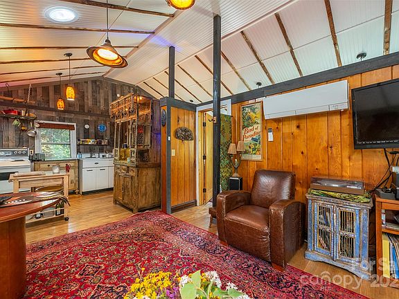 ( not counted in the HLA , due to ceiling height).Back covered deck overlooks the spacious back yard as well as the neighbors horses, maybe you'll want to bring your own! If you enjoy being in the country, but easy access to downtown Asheville , this home could be your dream come true.( During Helene the creek water came up to the bottom of the door on the door to crawl space , and completely subsided the next day)