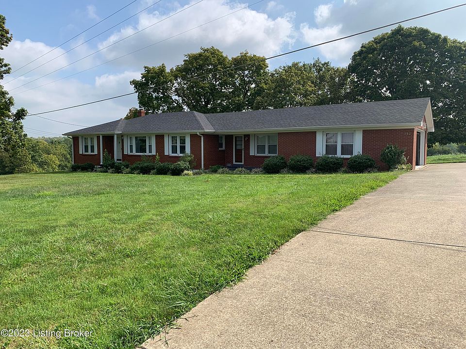 1487' sq feet above grade in this 3 bedroom, 1.5 bath brick ranch additional 1487' sq feet finished in the basement as well. First floor offers 3 bedrooms, 1.5 baths, dining room, den, living room with brick fireplace, and kitchen area with existing appliances. Beautiful Hardwood floors throughout the upstairs. Below grade offers kitchen area, living room, laundry area, and two additional rooms for storage or extra bedrooms if needed. Existing basement lift chair to access 1st and 2nd floors. 2 car attached garage, mature shade, and an excellent location just minutes form Bardstown and less than 45 minutes to Louisville and or Lexington. Recent roof and Hvac, replacement windows throughout and concrete drive!