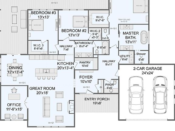 - Attached garage spaces: 2