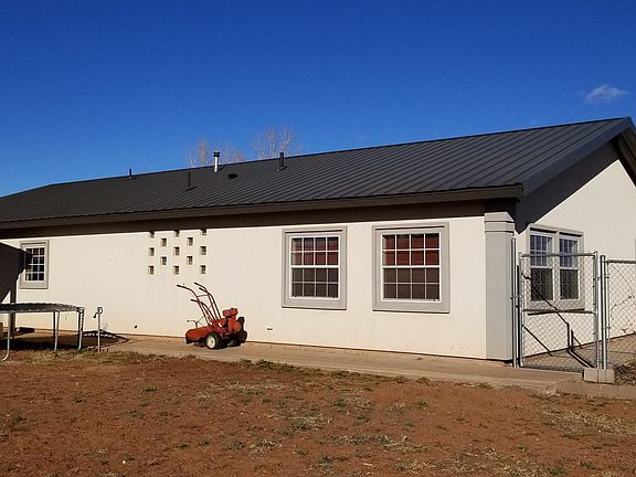 Beautiful 3 bed 2 bath home with huge bedrooms. You could get lost in the master bathroom! The kitchen and dining room are a chef's delight. Giant pantry off the kitchen. There is a metal roof and stucco on the outside. Front yard is landscaped, back is not. Property is completely fenced. Right across the highway from the golf course and just a couple of minutes from town.