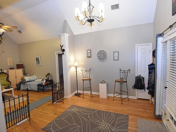 This beautiful three bed two bath house is set in a natural setting just a few minutes' drive from downtown Columbia and USC. It features a creek running through the backyard easily visible from the porch. This home features hardwood, tile, and laminate flooring. Has a nice open kitchen. Also has a jacuzzi tub, separate shower, with double vanities in the master bath.