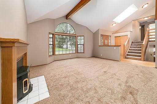 Beautifully updated SW Eugene Hills home. Close to trails & year round creek. Split level design provides a nice floor plan. Living, dining & kitchen on the main level with a soaring vaulted, exposed beam ceiling. Living room offers a pellet stove & bay window. Updated kitchen features all GE, stainless steel appliances including oven/range, built-in microwave, dishwasher & refrigerator with ice & water. A breakfast bar separates the kitchen & dining room with a slider to the back patio. A 3 bedrooms are upstairs. Double doors open to the master suite with corner shower, 2 sinks & walk-in closet. The family room, laundry room & garage are located on the lower level. Additional updates include carpet, paint, plumbing & light fixtures.
