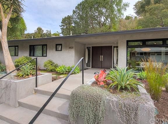 REDUCED $100K! Built in 1961. Audrey Hepburn was starring in Breakfast at Tiffanys, the space race was launching and hipsters were living in and loving cool Mid Century Modern homes like this! Foscarini pendant lights adorn the double door entry leading to expansive living areas overlooking tranquil private grounds with newly refinished swimming pool/ spa. The open concept floorplan transitions effortlessly to exterior spaces creating an atmosphere perfect for entertaining. A white brick fireplace with floating hearth is the focal point of living and library areas. Retro shag carpets and classic Terrazzo flooring add character. Enjoy cocktail hour in the family room; custom bar, grey plank flooring, a big stone fireplace keeps it cozy! Formal dining seats 10! Exquisite, contemporary, remodeled kitchen includes a suite of Jenn-Air floating black glass appliances; double ovens, built-in microwave and counter depth refrigerator. Quartz countertops & custom backsplash tie it together. Enjoy breakfast on the nearby patio. A massive media room/ office space has been created by combining two bedrooms. King-size master suite includes black marble counters & spa tub. All bedrooms are ensuite! FLEETWOOD dual pane doors & windows, newer HVAC, and 3 year old cool roof keep you comfortable. Eden-like yard offers multiple gathering areas for relaxing or entertaining. Coveted, award winning Lanai Elementary school & easy westside access.MCM lovers rejoice, you found your dream home!