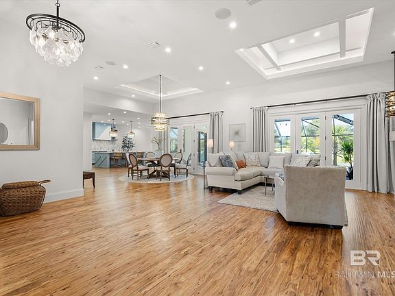 Super Structure Concrete Wall Home designed to withstand 300 MPH winds and is Gold Fortified for superior safety and durability. Nestled in Craft Farms Subdivision, this exquisite home offers direct golf course views, overlooking a serene lake. Inside, the chef’s kitchen boasts top-of-the-line stainless appliances, a wine cooler, ice maker, 48” gas range with double ovens, and modern finishes throughout. The expansive kitchen island anchors the space, which opens to a cozy keeping room that leads to the outdoor kitchen, featuring a stainless gas grill, refrigerator, sink, and stunning saltwater pool with captivating water features. Eucalyptus hardwoods grace the entire home, leading to three spacious bedrooms, each with its own luxurious ensuite bath. The home also includes a dedicated office space, a 3.5-car garage with additional outside storage, security lighting, tankless hot water, a whole-house water filtration system, and a whole-home Generac generator. Located just minutes from all the local conveniences and the pristine sandy beaches of Gulf Shores, this home offers a perfect blend of elegance, functionality, and safety in a highly sought-after location. Agent related to Seller. All information provided is deemed reliable but not guaranteed. Buyer or buyer’s agent to verify all information. Buyer to verify all information during due diligence.