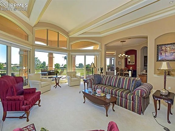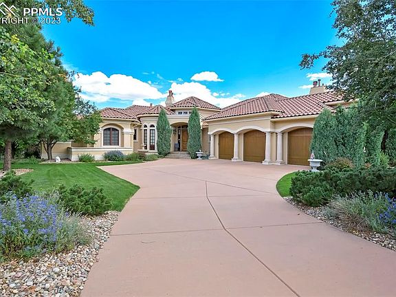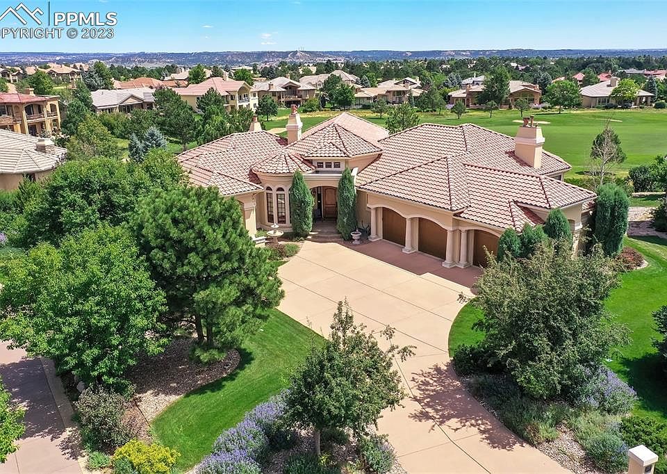 Gorgeous Custom Golf Course Residence! This 4 bedroom, 6 bath home includes a 3-car oversized garage and outstanding views. The main level features the great room with fireplace and walkout, separate dining room, gourmet kitchen with large pantry, wine room, hearth room and two bedrooms. The two main level bedrooms include walk-in closets, private baths, and the spacious master also includes a large sitting area and walkout to golf course views. The walkout lower level includes the family room, media room, two bedrooms, wet bar and bonus room. The two lower level bedroom suites offer walk-in closets, private baths and walkouts to the covered patio. The outdoor areas feature a large wraparound deck off the great room, master suite and gourmet kitchen and a large patio off the family room and two bedrooms suites plus amazing golf course, mountain and Pikes Peak views.