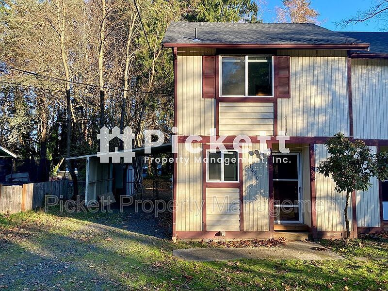Spacious 2 bed, 1.5 bath duplex with huge yard! Great location for access to Highway 3, Naval Hospital Bremerton, and easy commute to bases. The main level is the combination living and dining room, along with a half bath, kitchen features all new appliances. Upstairs are both bedrooms, a full bath, and a utility closet with washer and dryer hookups. Fully fenced backyard with carport. The home is on a septic system and there is an additional $25 charge per month in lieu of a sewer bill. Water paid by owner. Small pet possible with approved pet screening, additional $500 deposit, and $35 monthly pet rent, both per pet. Please note - The fireplace cannot be used at this time. All Pickett Property Management residents are enrolled in the Resident Benefits Package (RBP)! For just $25 per month, residents can enjoy exclusive benefits including credit building to boost their credit score with timely rent payments, up to $1M in Identity Theft Protection, our top-notch resident rewards program, and much more! Residents can enhance their RBP by adding rental insurance that meets the Pickett requirements plus more for a flat $11.95 per month, and on-demand pest control for an additional $17/month. Pickett Property Management does not accept comprehensive reusable reports. Amenities: electric stove, dishwasher, refrigerator, washer and dryer hookups, electric baseboard heat, fenced backyard, small pet possible, driveway, 1 car carport