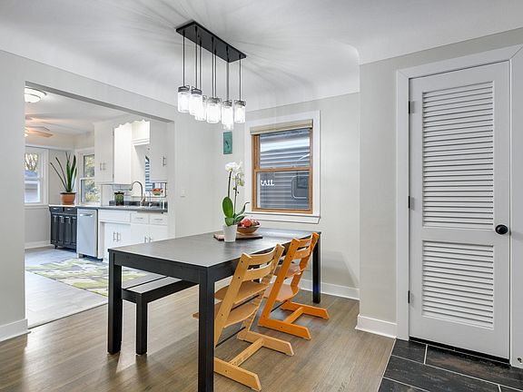 What you'll love about the home: Updated kitchen, lots of natural light, high ceilings and space in the basement, expanse of the back yard with all the gardens for food and flowers, public city park right out the back door with the pond where wildlife can be watched. Several city parks, playgrounds and natural areas within a short walk. Quiet street and neighborhood. Extra shop space below garage. Basement has potential for a fourth bedroom. Easy highway access.
