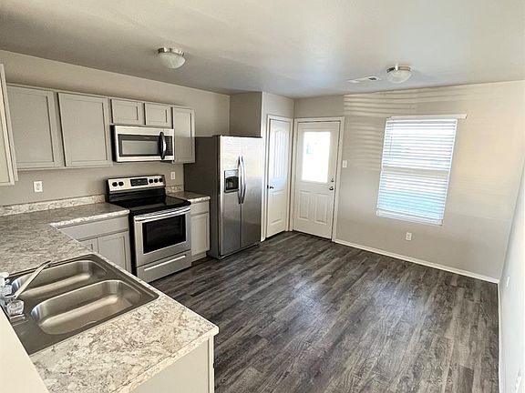 Welcome to your dream home! This stunning 3-bedroom, 2-bath haven boasts timeless elegance with its all-brick exterior and laminate tile flooring throughout. Step inside to discover a thoughtfully designed layout featuring a split floor plan for added privacy, complemented by a spacious laundry room for convenience. The heart of the home is the inviting kitchen, complete with all appliances, where memories are made around the eat-in area, seamlessly flowing into the living rooma perfect space for entertaining or relaxing with loved ones. Retreat to the owner's suite, nestled in its own private quarter, offering a serene sanctuary after a long day. Outside, discover the expansive backyard, providing ample space for outdoor activities and endless possibilities for customization. With a 2-car garage and all systems & appliances just 3 years old, this home offers both comfort and peace of mind. Situated in a tranquil neighborhood, this property embodies the essence of modern living while preserving the warmth of home. Don't miss out on this rare opportunityschedule your showing today!