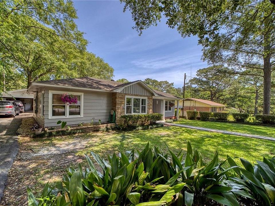 What a charmer, you'll swear you're in midtown and oh what curb appeal this place has to offer! Sellers had new front sidewalk installed and new gravel added to the extra parking pad out front. The majestic mature trees will absolutely captivate you. What a quaint and welcoming patio entryway greets you with a freshly installed custom made "artsy" front door (copied from HGTV). Step into the spacious living room with lots of indirect lighting and beautiful real knotty-pine paneling. The living room has a Dining Room attached and this portion of the home has two bedrooms as a bathroom giving options for a guest suite, teenage suite , co-family space or whatever your needs. Step inside the roomy mostly white kitchen space with tons of cabinets , a brand new microwave and a handy breakfast bar for informal dining. You'll find a large bedroom off the kitchen and a full bathroom is central to all spaces. The kitchen opens to an oversized family room featuring windows that open out for easy cleaning and French doors open to the covered back patio & deck. Off the family room, down a short hall, discover the master bedroom/ bathroom suite with a dressing area. The awesome patio & deck out back is the place you'll want to relax after a long day overlooking this massive fenced and landscaped backyard. This home offers a detached double carport with a great attached storage building too. Seller clear back lot to make it what it is today with it's park-like setting. Seller replaced all outside wood , added insulation and some new plumbing . Some replaced Windows by Windows World 2008, hot water heater replaced 2011, dishwasher 2016, HVAC 2005, Roof 2005.