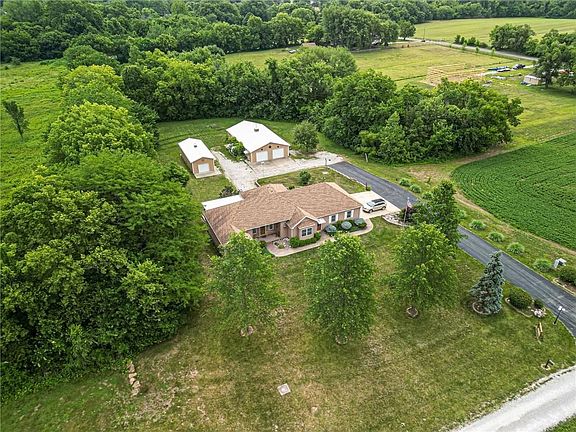 Want to get out of Jackson County ! This custom-built beauty is situated just outside city limits in Lafayette County, providing a serene and private oasis. Enjoy the spacious four seasons sunroom for the perfect retreat. The two oversized outbuildings (16ftx40ft and 32ftx56ft) are a dream come true for car enthusiasts or those in need of abundant storage space. With a total of 8 garage spaces, some being 10ft doors, you'll have plenty of room for vehicles, equipment, and all your hobbies. The kitchen features ample cabinetry, counter space, two pantries, and modern appliances. Fantastic closet space throughout, including two walk-in closets in the master bedroom. The finished dry walkout basement adds versatility to this already remarkable home, offering additional living space that can be tailored to suit your specific needs. Wet bar/kitchenette is already installed with an additional bathroom started in the basement waiting for your finishing touches. Surrounded by nature, incredible neighbors while still close to amenities...win, win, win! Don't miss out on calling this house HOME! 2023-07-01
