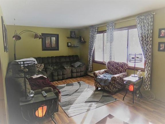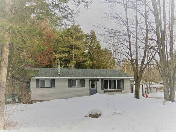 Country Living yet close to town! This country ranch style home features 3 main floor bedrooms, 1 full bath, a galley style kitchen and dining area, spacious living room and patio doors leading to a large backyard deck. The lower level consists of a bonus room, partially finished family room with a free standing wood stove, laundry and utility room and a storage room. Recent updates include newer roof shingles(2017), dishwasher and stove (2018) well pressure tank and hot water heater (2017) garage doors (2016) Hydronic Boiler (2018) . Other amenities include a two car detached garage, large backyard, apple trees and a blacktop driveway