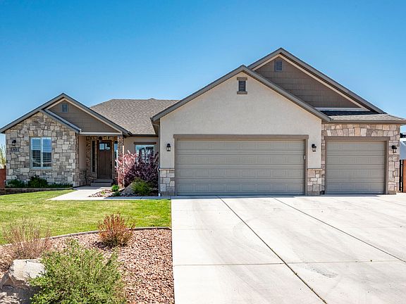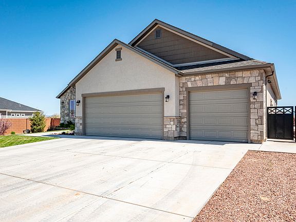 This modern home boasts an exceptional layout designed for both comfort and elegance. The exterior of the house is strikingly characterized by its full block wall, offering both privacy and a touch of contemporary style. As you step inside, you are greeted by an expansive, open-plan living area that seamlessly connects the living room, dining area, and a state-of-the-art kitchen. A hidden gem within the kitchen is the walk-in pantry, cleverly concealed behind sleek cabinetry, providing ample space for your culinary essentials. The master suite is a true retreat, featuring a spacious walk-in closet with custom shelving and a layout that maximizes both space and functionality. This private haven creates an ideal environment for relaxation and rejuvenation. See ''more'' Adding to the home's appeal is the thoughtfully designed basement, which includes a cozy kitchenette, perfect for entertaining or hosting guests for extended stays. For those who enjoy an active lifestyle, this home does not disappoint. It includes a fully equipped home gym, complete with a kid-sized rock wall that promises hours of fun and fitness for the whole family. Outdoor living is just as impressive with a professionally landscaped garden that houses a horseshoe pit, a half-court basketball/ regulation size pickleball area complete with lighting for night-time play, and a luxurious gas fire pit area ideal for evening gatherings. The property also features ample RV parking, making it perfect for adventurers looking to explore without leaving the comforts of home behind. This home is a remarkable blend of modern luxury, thoughtful design, and family-friendly features, making it a distinguished and desirable residence.