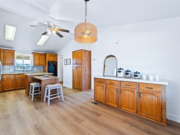 - Breakfast Bar, Ceiling Fan(s), Dining Area, Granite Counters, Kitchen Island, Vaulted Ceiling(s), Window Treatments