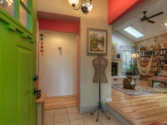 Loaded with character, this artist's home has just become available! Beautifully designed home features hickory hardwood floors, vaulted ceilings, and a recently installed custom wood burning fireplace insert. Bonus room with its own entrance can be an artist studio, office, workout room, or turn it into a studio apartment. The roof is just months old. Remodeled bathroom features a large jetted tub. Fresh interior paint throughout.