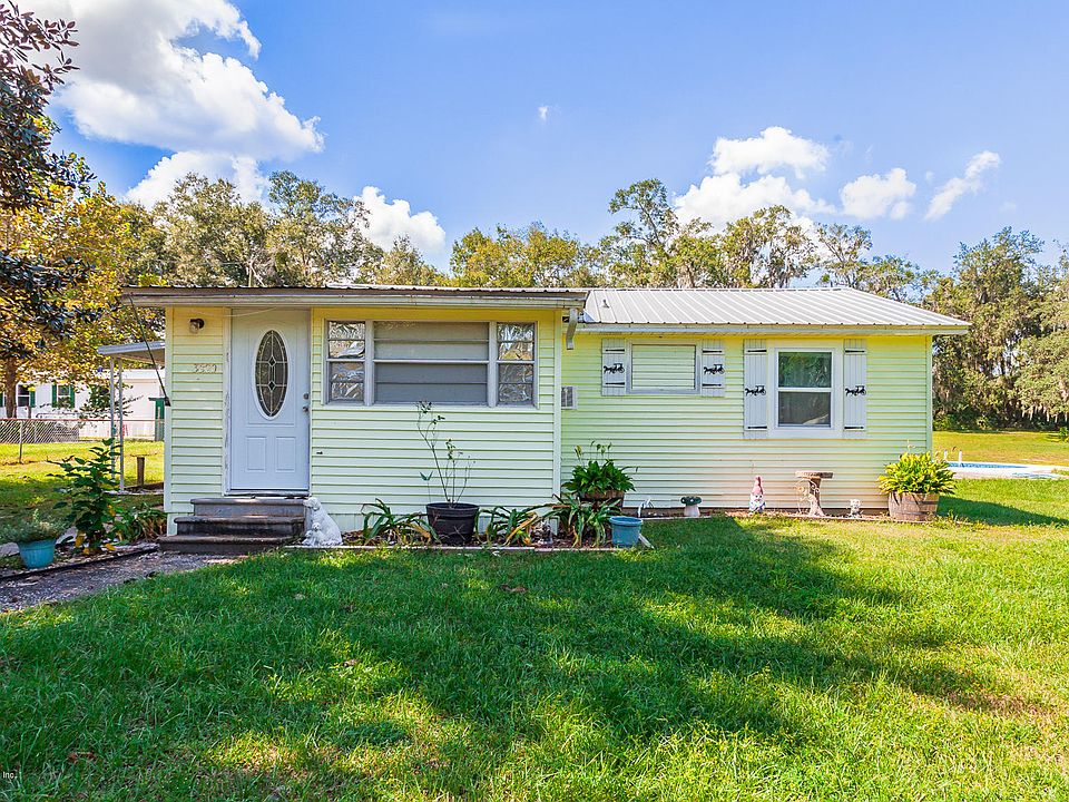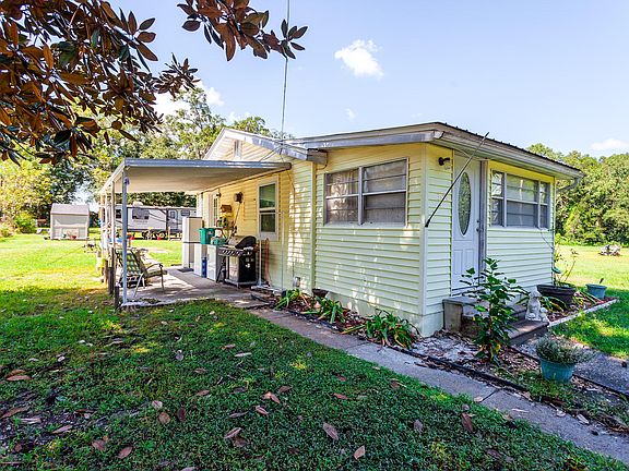 If you're looking for tons of privacy, land, and nature, this is it! Enjoy country living with this 880 sq ft, 2 bedroom home on 1.5 acres with private in-ground pool! Large fenced in yard is perfect for pets, kids, sheds, storage, or even expanding the home itself. Inside includes foyer/mud room with French doors leading to carpeted living area and seperated kitchen with stove, microwave, refrigerator, and tons of cabinet and counter space. Hallway leads to master with walk in closet, second bedroom, and spacious full bathroom. Enjoy a covered porch on the side of the house and second entry/exit door. Washer/Dryer connect there. Tons of privacy with a preserve view around the entire back and side of the property. Come see it before it's gone!