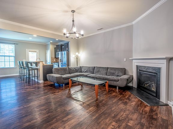 Welcome to 3820 Prince Noah Loop, located in the highly sought-after Stonegate Townhomes community—perfectly situated near US-401 and I-540 for easy commuting. This beautiful 3-bedroom, 2.5-bath townhome offers 1,685 sq ft of comfortable living space along with a 1-car garage. Residents enjoy excellent neighborhood amenities including a clubhouse, pool, tennis courts, and playground. Inside, the open-concept main level features luxury vinyl plank flooring and crown molding throughout. The inviting family room includes a corner gas log fireplace and flows seamlessly into the kitchen and dining area. The kitchen boasts granite countertops, stained cabinetry, a center island, recessed lighting, a pantry, and stainless steel appliances, including a double-door refrigerator with bottom freezer—plus a brand-new stainless steel sink and faucet. A glass door leads out to the back patio, offering peaceful wooded views. Upstairs, LVP flooring continues throughout the second level, where you'll find the spacious owner's suite featuring a tray ceiling, dimmer switch, crown molding, triple window, and a walk-in closet. The en-suite bath includes a dual granite vanity, tile flooring, a walk-in tile shower, and a separate walk-in closet. Two additional bedrooms, a full bath, a laundry closet with washer and dryer, a linen closet, and pull-down attic stairs complete the second floor.