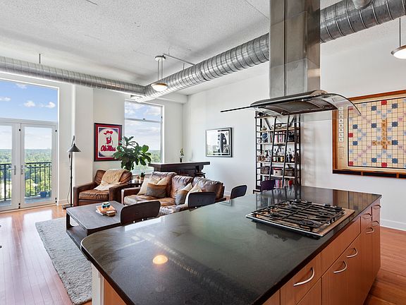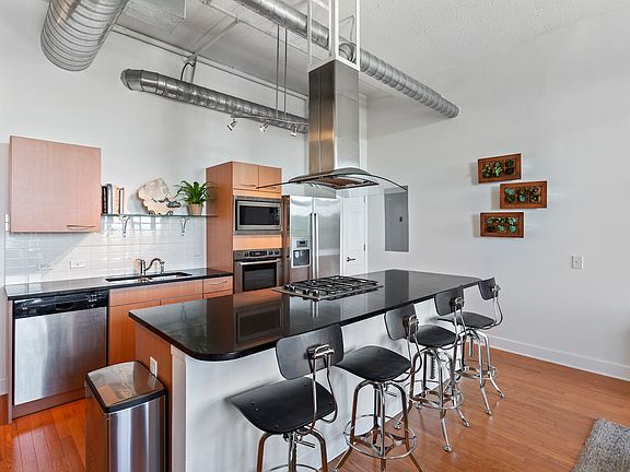 Highly desirable TOP FLOOR condo with extra half bath. Plus a separate storage room is included. Hardwoods throughout the main living area. Kitchen offers granite counters, gas cooking and breakfast bar. Open floorplan is perfect for entertaining. Large bedroom with walk-in closet and private bathroom with double vanities, separate tub and shower. Move-in ready with oversized private balcony with excellent views north. Convenient covered parking in gated garage. Resort style amenities include concierge, pool with outdoor kitchen, clubroom and fitness center. Please click virtual tour to view video.