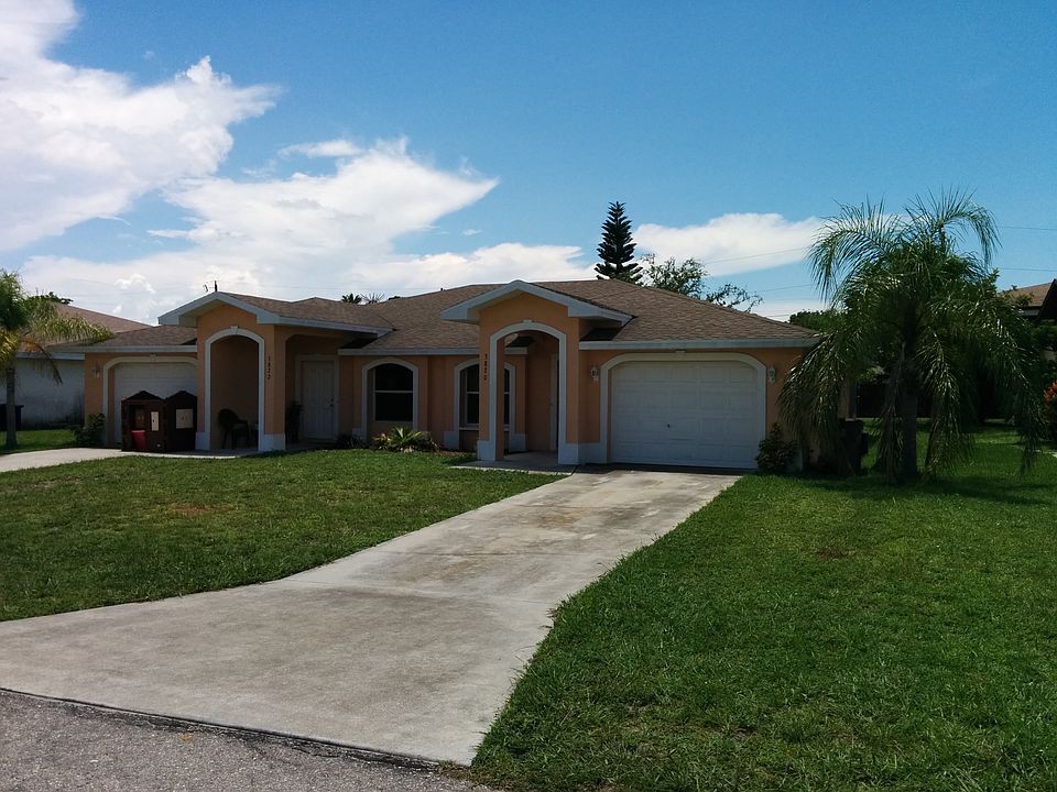 Newer spacious duplex in convenient location off Country Club Blvd close to Veterans and Cape Coral Pwky. Newly renovated. 3 bedrooms 2 baths, tile in living room and carpet in bedrooms, hookup for washer and dryer, 1 car garage, city water, vaulted ceiling, very quite neighborhood. 1st month rent + security deposit are required to get in. Last month may be required. Pets are negotiable. Tenant is responsible for utilities (electric and water). Trash removal included. Ability to produce verification of employment and income is required. Background and criminal history will be checked. Rent term is 1 year.