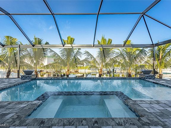 BRAND NEW salt water pool & spa with spectacular lighting & spill water bowls pouring into the pool creating the ultimate luxury space! Gorgeous new paver patio directly off of the kitchen, living space, and primary bedroom afford the opportunity to allow your entertainment space to flow outside seamlessly with brand new lanai cage. Supreme location in fabulous Savona neighborhood, close to all amenities & just moments from Caloosahatchee River by boat with NO bridges! Tastefully renovated including new bathrooms, gorgeous new kitchen with dry bar, new tile floors, new appliances, new impact windows, and a new roof in 2021! Fabulous split bedroom floor plan offers many possibilities! Primary bedroom has walk in closet & stunning en suite bathroom!! Home features 3 bedrooms, 2 bathrooms, and a 2 car garage! Sailboat access to the Gulf of Mexico in minutes in this prime South Cape Coral home on a 90' canal with a brand new 10k boat lift, brand new composite dock, and concrete dock!! Enjoy famous Florida sunrises & sunsets from your own gorgeous fenced back yard! Pristine direct sailboat Gulf access home withstood Ian like a dream! Seller is a licensed Florida Real Estate Salesperson.