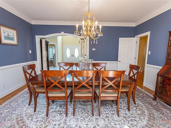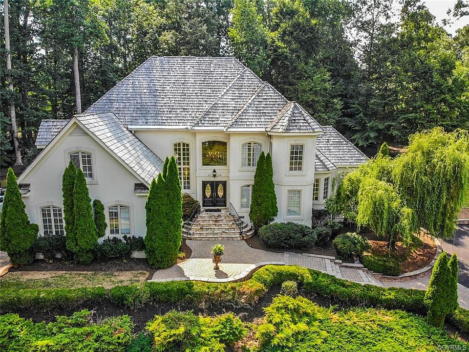 A Mike Dumont designed masterpiece! From foyer columns to the meticulously manicured lot, this home shines! The grand entrance w/ marble floors & soaring ceilings reflect the classy feel of the entire home. The dining room & formal living room are open to the foyer & are perfect for entertaining guests. The kitchen & living room combine to make a huge space w/ wonderful details. The kitchen boasts granite counters, SS & black appliances & 2 islands one w/ a breakfast bar the other w/ a wet bar and wine cooler. The living room has beamed cathedral ceilings, a stone fireplace, HDWD floors & custom built-ins. A convenient master bdrm w/ a bay window is included in the 1st floor. Upstairs, the enormous master bdrm is drenched in natural light & features 3 walk-in closets and a luxurious bathroom w/ a jacuzzi tub. An additional room of over 350 sq ft could be utilized as a bdrm & has a full bathroom. 2 more oversized sized bdrms & 2 baths finish the 2nd floor. This timeless home includes a 2 car garage w/ direct entry, sizable back deck w/ a pergola & hot tub & a peaceful waterfall. You get all of this in a quiet, gated community w/ award winning schools & easy access to the James River