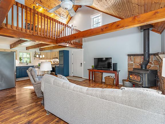 Charm. For. Days. The minute you walk into this post & beam home you will fall in love with the character and finishes. With no detail left untouched this 2,474 sq. ft. 4BR/2BA house on 5 acres is going to spoil the next owner. The main level is open and bright with cathedral knotty pine ceilings & rustic exposed timber beams. It houses a recently updated kitchen & bathroom , and 2 bedrooms while the upper level houses the Primary Bedroom with private bath and loft. It doesn't stop there, however, for the full basement has yet another bedroom, family, laundry, & mud rooms, and is plumbed for a 3rd bathroom. With a 2 car attached garage, trailer parking, circle drive, open green lawns, and perennial flowers this is an opportunity to spoil yourself!