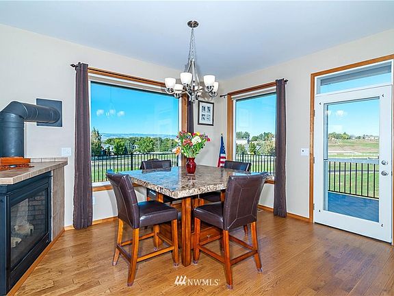 Stunning 3442 SF home in awesome location w/picture windows capturing the views.Kitchen w/granite cntrs, w/in pantry & Lg Is. thats open to living area w/gas fireplace! Lg Balcony.Hand scraped hardwd flrs throughout upstairs. Mstr suite w/custom bath- tile shower, underlit cabinet & w/in closet.Curved staircase to generous rec rm w/bar area, bth, office/exerc. rm & 2 lg bdrm.Covered patio & prvt yd. 46 X 78 shop w/part. radiant heat flrs, foam insul, bth, RV clean out,10x20 loft. SOLAR power!