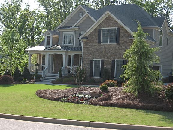 3 story home, 4 BR, 4 baths, media room, office, living room, sitting room, dinning room, hardwood floors down stairs, granite kitchen counters, huge screened in proch with TV and funiture, 3 car garage, finished basement with HVAC, plenty of storage, a theater room, work out gym and a full size wet bar all sits on a 1 acre lot with an in ground swimming pool with a raised hot tub, sod front and back yard, well landscaped, sprinkler system, small neighborhood, good neighbors and schools, forsyth county taxes, large enclosed screened in porch, fenced yard, front porch sitting area