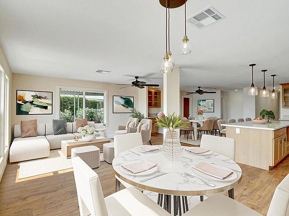 Discover the epitome of refined living in this exquisite, triple-wide manufactured home. Recently renovated from the floors up, this property redefines modern comfort and style in a vibrant 55+ community. Step in to an open floor plan that seamlessly connects living, dining, and the kitchen, ideal for both relaxing and entertaining. The heart of this home features sleek quartz countertops, a wet bar, and a plethora of storage solutions that cater to all your organizational needs. The bonus room, enhanced with a stylish frosted glass door, offers a flexible space, perfect as a home office or creative room. This home boasts two generous bedrooms, including a serene primary bedroom with a huge walk-in closet, ensuring personal space remains private and plentiful. The primary bathroom has been meticulously designed to provide a spa-like experience, right in the comfort of your own home. Not only has the interior been completely remodeled with top-notch finishes, but practical updates like a new roof has also been installed, blending aesthetics with reliability. For your peace of mind and convenience, proximity to Eisenhower Health ensures healthcare needs are met just a short distance away. This location combines the tranquility of a secluded retreat with the security of accessible health services. Perfect for those who cherish sophistication and an active lifestyle, this home is ready to provide a delightful living experience. Living in this welcoming community means enjoying low homeowners' association dues that surprisingly cover FREE golf, free internet and trash pickup, a clubhouse with a restaurant, a lounge, 18-hole executive golf course and pro shop, three community pools, hot tubs and an exercise room. Add a billiard room, card room, indoor shuffle board, tennis courts, pickle ball courts, library, recreation room, and many active clubs to realize all that PDGCC offers for your perfect desert home. With a variety of activities, every day can be as active or relaxed as you desire. This incredible home won't last long! Please call for a showing.