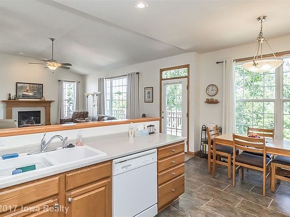 Beautiful, move in ready stand-alone Timberline Cottage in great Urbandale location!! Open floor plan, vaulted living room with fireplace, tall ceilings and many windows giving lots of light. Updates include new kitchen flooring, 2 year old carpeting and new refrigerator in 2017. There is a big pantry and 1st floor laundry! Large master bedroom with 3/4 bath and walk-in closet. Second bedroom/office up is next to a full bath. The large daylight lower level has a family room with 2nd fireplace and 3rd bedroom with newer Berber carpet. The attached garage is 20 x 24 and has a rear service door. Large private shady deck off kitchen for your enjoyment plus large patio behind the garage.