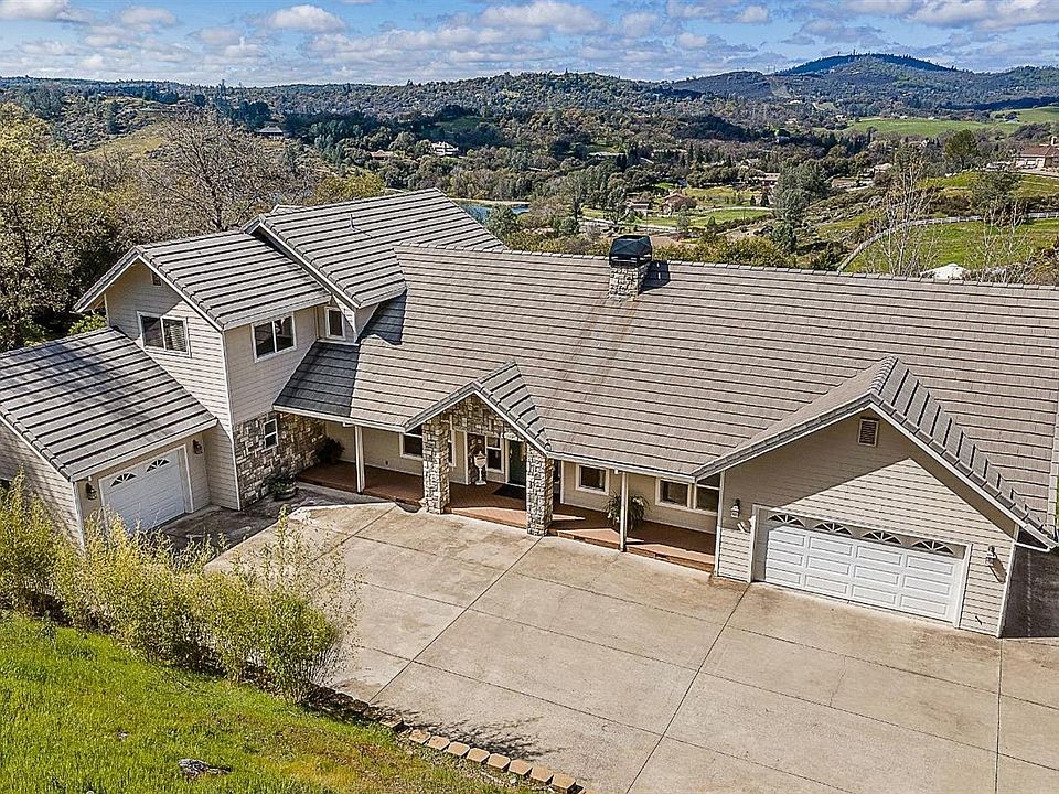 Gorgeous home, which can live like a single-story, on over 4 acres in Greenstone Country. Massive living room, including shuffleboard, billiards, cocktail wet bar. Built-in swimming pool and spa. Three bedroom suites - one on each level of the home. Front office. Upstairs coffee retreat with birds-eye balcony. 4 full bathrooms. 3 fireplaces. Huge, finished storage room. 3 separate garages. Laundry room has dog-wash station. Huge chef's kitchen with solid countertops, two islands and walk-in pantry. Adequate land to create horse pasture. Dazzling sunset views. Greenstone amenities include clubhouse (the barn), lakes, trails, tennis, pickle ball, volleyball, playgrounds, BBQ parks.