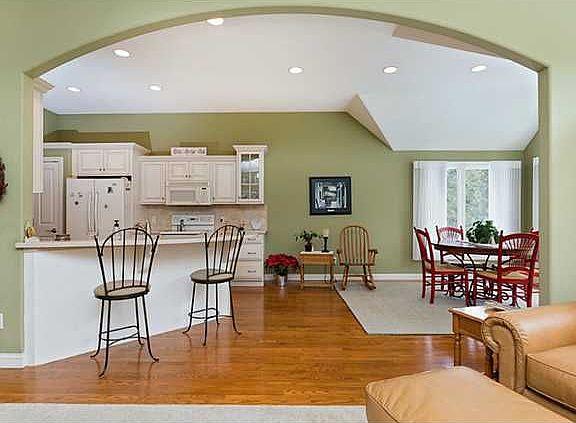GREAT PRICE FOR THE NEIGHBORHOOD! Beautiful, spacious villa. Open LR w/soaring ceilings, gas fireplace, crown molding, carpet framed in hardwood floors! Eat-in-kitchen w hdwd, all appliances remain . Eat-in area overlooking treed backyard. Master w/ bath/spa. Huge finished basement w/wetbar & half bath. Plenty of storage!