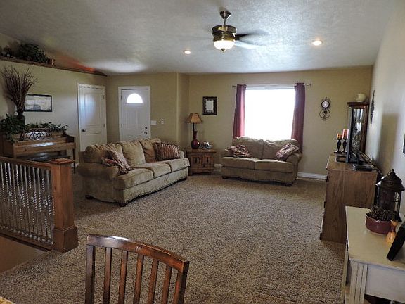 Great home in awesome neighborhood, priced to sell! Walk into the large family room that leads to a great kitchen with custom cabinets and large walk in pantry. Main floor laundry/mudroom leads to oversized 2 car garage. Master bedroom has large walk in closet. Master bath has double sink in custom vanity, shower, and soaker tub. Downstairs has 3 more large bedrooms and finished bath. Large storage room for all your storage. Yard is complete with sprinklers and garden area with established raspberry bushes. You will love that your back yard neighbors are set off in the distance, which adds to your privacy. Large deck and central air really make this home a bargain!