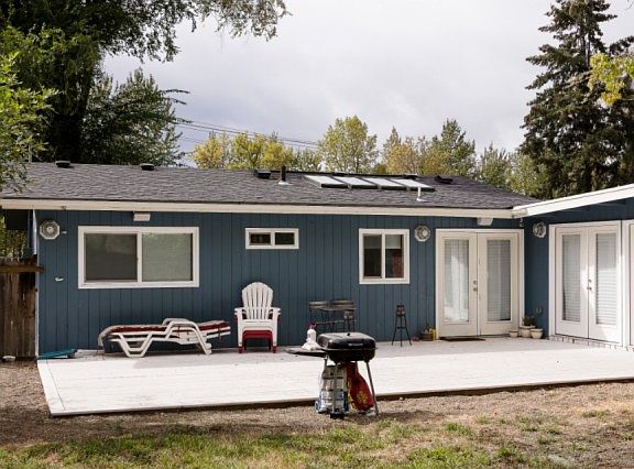Beautifully Remodeled Mid-Century Modern Home on .34 Acre Lot in Eugene! The Open Concept Floor Plan and Built- In Speakers throughout the Home are Great for Entertaining. This Home Features Tasmania Betula- Birch Floors, Butcher Block Counters, and Stainless Steel Appliances that are Sure to Impress! Skylights throughout the Home bring in an Abundance of Natural Light. Relax in the Master Suite with a Warm Fire and French Doors Opening to the Deck. The Master Bath Features Brazilian Slate Tile Floors, Walk-In Glass Door Shower and His and Her Sinks. Continue Entertaining Guests on the Huge Deck which overlooks the Fenced Backyard with Raised Garden beds and Mature Trees.