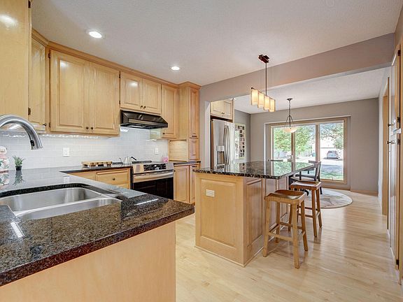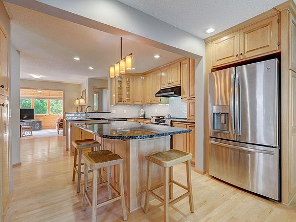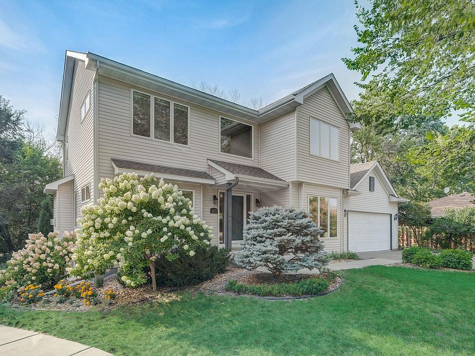 This 2-story home situated on a peaceful cul-de-sac. Inside has beautiful ¾-inch solid maple floors, Marvin Integrity windows & patio doors, along w/ solid 6-panel interior doors. Foyer welcomes guests into a formal living room. The open kitchen & casual dining area, is adorned w/ Quarry granite countertops, ample storage, & a center island. Family room offers scenic backyard views & a cozy gas fireplace. An adjoining 4-season porch opens to a fantastic deck. Upstairs, the primary suite w/ walk-in closet & a private bathroom. 3 more bedrooms share a well-appointed full bathroom. The partially finished lower level w/ new carpet allows for customization, potentially increasing the home's equity. Attached oversized 2+ car garage. Backyard offers wooded views, a low-maintenance deck, & a covered patio. Backing up to a park, this property provides extra green space & recreational opportunities. Additional upgrades include a brand-new 30-year roof, high-end appliances, & updated mechanicals.