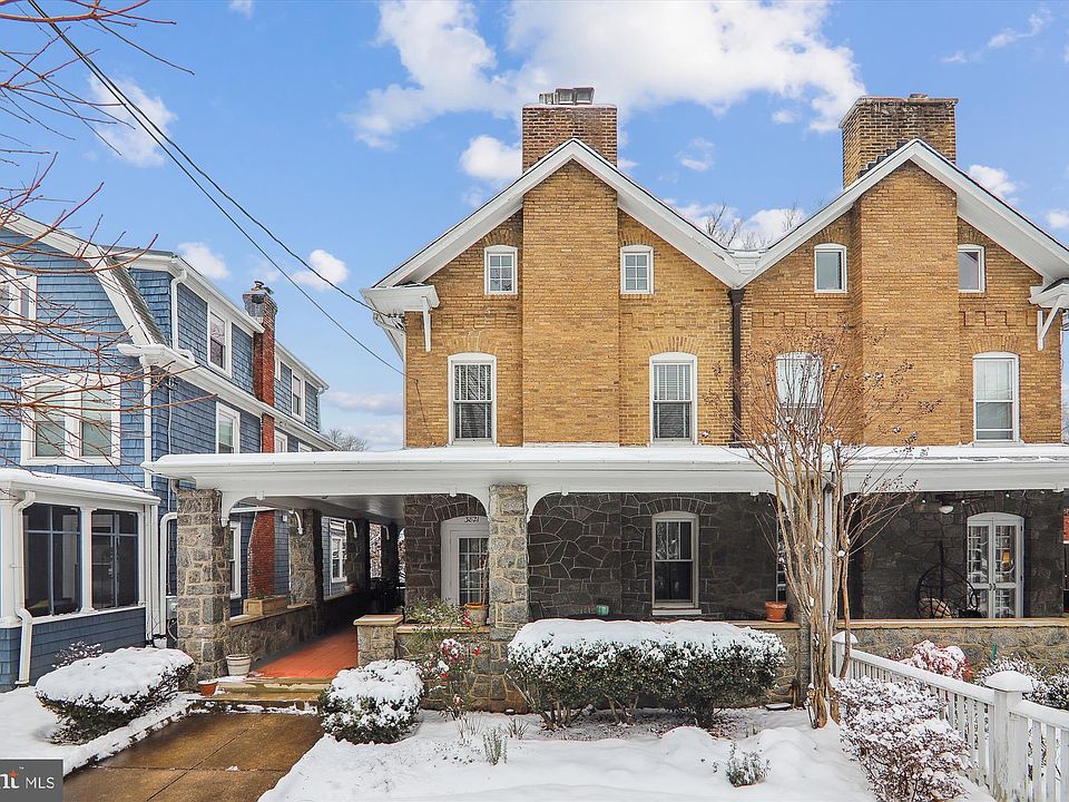 Explore the timeless charm and contemporary conveniences of this expansive home located in the sought-after Chevy Chase neighborhood. Crafted in 1914 and boasting a generous 3878 sqft, this Craftsman-style home is nestled on a deep lot, featuring a broad, wrap-around porch and professional landscaping. Upon entering, a gracious foyer welcomes you revealing the home's impressive size. A spacious living room features coffered ceilings, custom built-ins and an imposing stone fireplace that creates a cozy focal point for gatherings on a chilly evening. Original pocket doors lead to a gracious dining room with ample space for large dinner parties and intimate gatherings. From there, French doors lead to the sunroom — a versatile space suitable for remote work, a cozy den, or a breakfast nook overlooking a serene rear garden. Mexican tiles add color and charm to the well-appointed kitchen. A tucked away powder room completes the first level. Ascending to the upper levels, discover four generously sized bedrooms with ample closet space. The primary bedroom offers an en suite bath and French doors leading to a second sunroom, ideal for working from home, exercising, or simply unwinding. The second-floor front room is currently configured as a family room/study, featuring a second fireplace and a custom-built desk unit. The lower level presents endless possibilities with a spacious open area and high ceilings. This meticulously maintained home includes Andersen windows, two rebuilt fireplaces with new flues (2020), new central air (2020), and a Maytag washer and dryer (2019). With off-street parking and a prime location just steps away from the Connecticut Ave corridor, this home offers the epitome of comfort and convenience. Being inbounds to Lafayette, Deal, and Jackson-Reed schools, with walkable grocery stores, boutique shops, dining options, and Metro access completes the package. Welcome Home!”