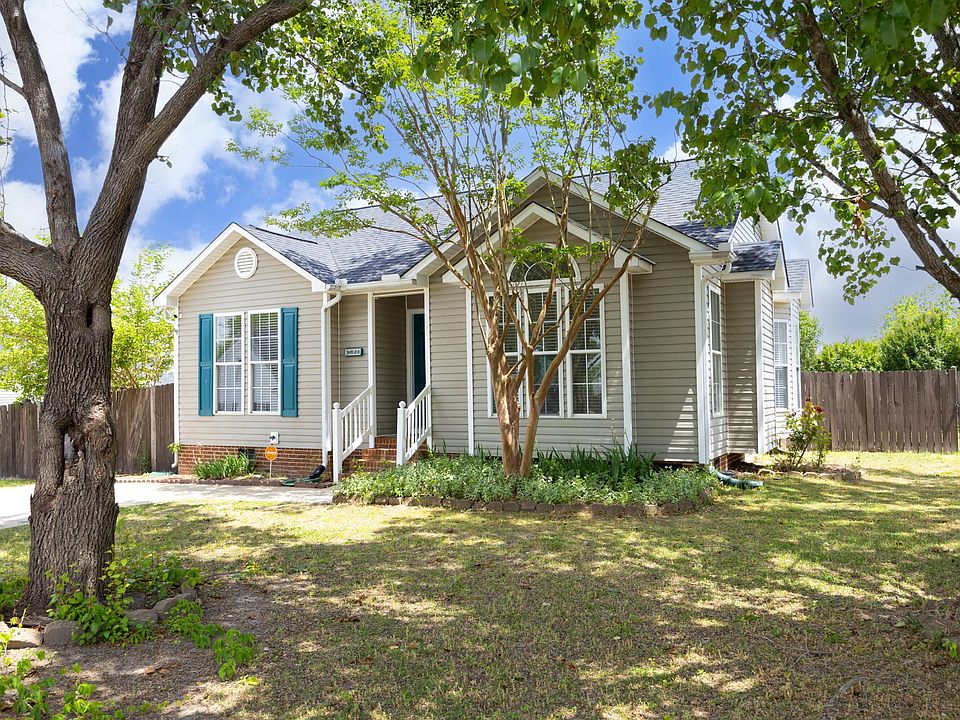 Don't miss this absolutely darling home with huge, fully-fenced back yard on a corner lot in Raleigh! Beautiful, mature trees in the front yard for lots of summer shade. So lovely inside with brand new flooring and fresh paint throughout! Spacious, eat-in kitchen with double doors to the back deck for your warm-weather meals. Newer HVAC and roof! Refrigerator, washer, and dryer all convey. Buyer to check school assignments, as they are subject to change.