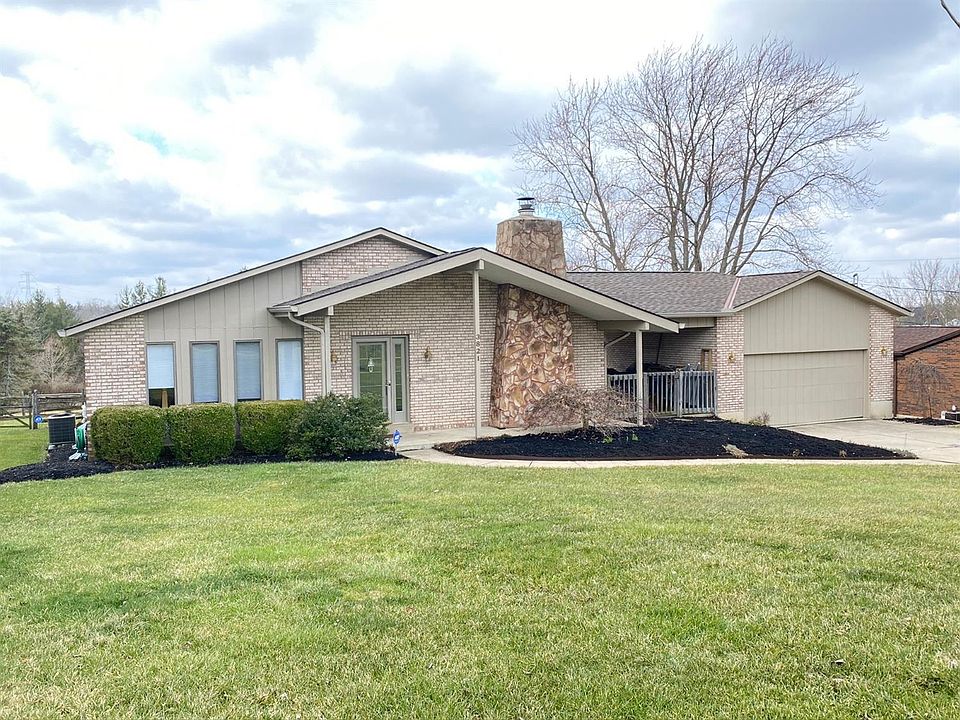 Dreams Live Here! Beautiful 3 bedroom 2 full bath 1 half bath, Brick,Wood, Stone Ranch with finished lower level.Two car garage, All baths updated with new vanities. Lower level with wet bar and walkout. Great room with wood-burning fireplace with 2 walkouts. Enjoy entertaining on your patio and deck leading to the above ground pool, Updated Home