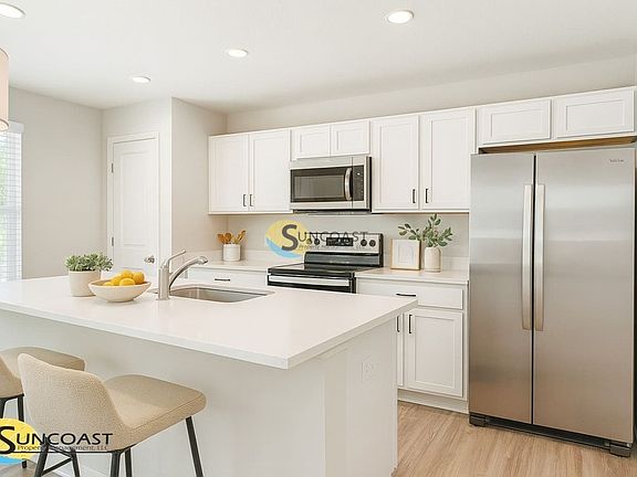This newly constructed 2 bedroom, 2.5 bathroom townhome in Ocala is ready for its very first residents. Built in 2025, this home features modern white cabinetry, luxury vinyl plank floors, an open-concept design, and private bathrooms in each bedroom.