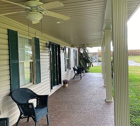 Beautiful park-like country setting on 8.6 acres! Home has an OPEN FLOOR plan with VAULTED ceilings! Total living space is 3,925 square feet! Interior features include three gas log fireplaces, large master BR with en-suite, finished basement and bonus room! There are two electric heat pumps. Exterior features include a huge, covered front porch and back deck with a hot tub that stays! There is a two-car attached garage and also a FIVE BAY, detached pole barn with a heated/cooled office space. Home looks out over a 1.5 acre STOCKED lake!