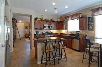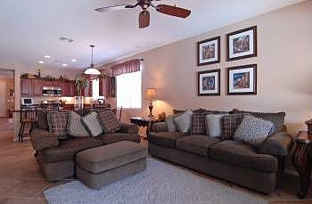 Stunning location as it backs to the mountain & faces open space in the front.Immediately upon entering you will be in awe of this highly upgraded Holiday model,large neutral tile laid in the desirable diagonal w/chiseled edges throughout.Formal living & dining w/views straight through to the oh so popular family room kitchen combo,slab granite,cherry cabinetry,pull out shelving,stainless appliances including the 5 burner gas range&convection micro.!