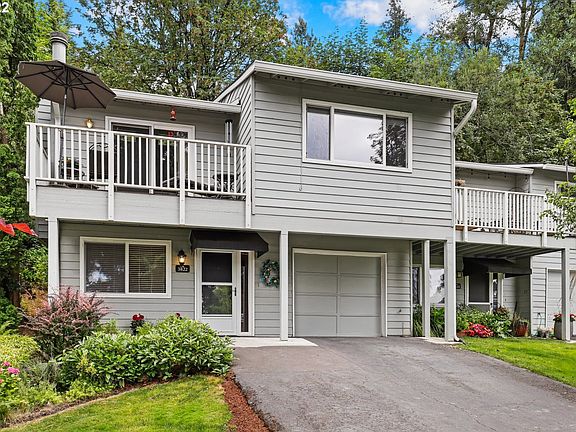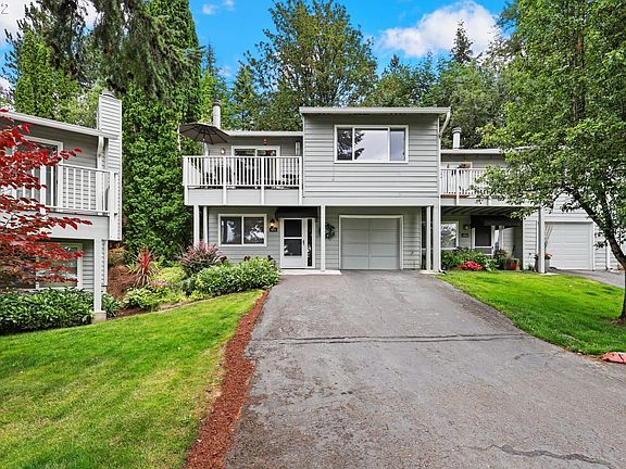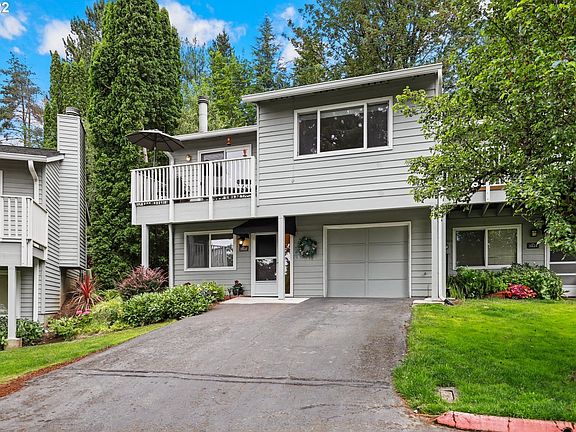 End-unit townhome in desirable Lake Oswego neighborhood! Main floor has full bedroom & full bathroom with washer/dryer. Deep garage with built in shelving for more storage. Upper floor has vaulted ceilings, sliders leading to 2 different decks, wood burning fireplace, quartz kitchen countertops and tons of natural light. All 3 bedrooms have custom California closets for extra storage. Desirable Lake Oswego Schools and Mountain Park Amenities.