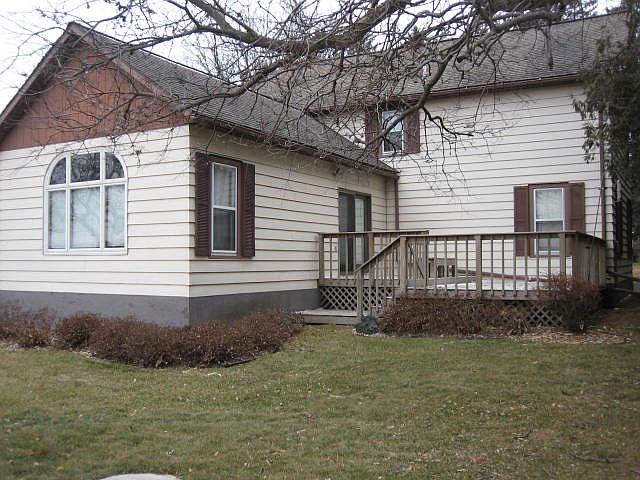 A large house with 4 bedrooms, 3 bathrooms (full, ¾, ½) is on the three-acre site. The house has a large kitchen with an island, family room with a full bay window, dining room and master bedroom are on first floor. Just off the master bedroom is the full bath and laundry room. The upper level has three bedrooms and ¾ bath. There is a full unfinished basement, septic system, private well that has been tested, rural water available, and fiber optics service for phone, internet and cable TV. The acreage, with Crane Creek nearby, is perfect for the outdoors man. Wildlife including deer, wild turkey and bald eagles are just across the road where you can also go fishing. Other buildings on the acreage include a large machine shed with shop area, a livestock building that has many uses and a storage building.
