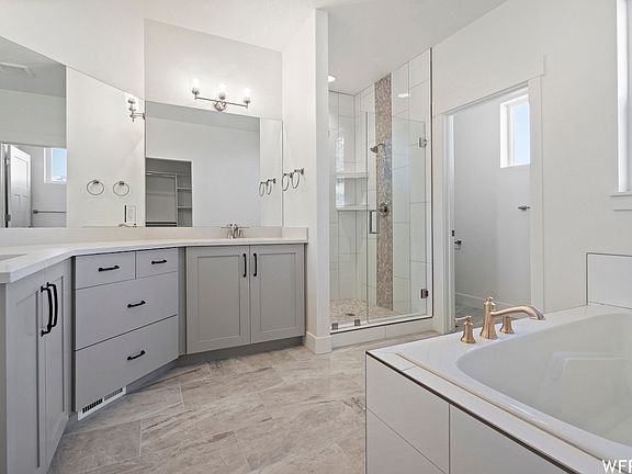 Located in beautiful Provo, this stunning customizable home is perfect for all your needs. With the option to finish the basement, there's the potential for 5 bedrooms. The following luxury options are included in the listed price: 9' ceilings on the main floor, custom-built cabinets with soft close drawers and your choice of range hood, quartz countertops, high-quality LVP and carpet, tile in bathrooms, a high-efficiency furnace, tile surround master shower with a euro glass door, a craftsman-style exterior and 3rd car garage, and more! The lot is conveniently located near shopping and dining, and schools. We offer either locked-in pricing or a cost-plus contract to fit the needs of any client. We're also happy to provide cost estimates on any floor plan your client is interested in. (Lot price & estimated city fees are included in price)