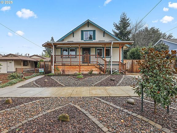 This updated Bungalow on oversized lot sits 1 block from Wellington Park and 2 blocks from Scott Grade school. As you walk to the entrance you will be welcomed by the covered front porch with skylights for enjoying your summer days. Enter the home and take in the custom arch way. This 3 bedroom 1.1 bath home has a great layout with 3rd bedroom & half bath located upstairs. Downstairs has tile floor and ample amount of room for storage, bonus room and workshop area. This pride of ownership home has been meticulously maintained and updated. Updates include highest quality hardwood flooring, added attic insulation, new windows, AC, updated electrical panel, smart thermostat, reverse osmosis drinking water system, 30 year roof(7 years old), gas furnace (6 years), walk-in shower, granite countertops, tile flooring, hand laid patio pavers, shake siding, gutter guards, raised garden beds, new concrete driveway and sidewalk, gated driveway, custom landscaping and brand new 12K Trex back deck. This home is truly turn key ready and awaits the new owner. Start the year off right by purchasing this amazing home. [Home Energy Score = 1. HES Report at https://rpt.greenbuildingregistry.com/hes/OR10235267]