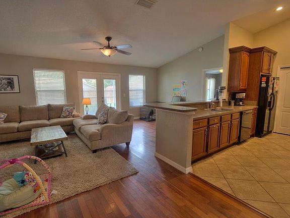 - Interior Layout: Volume Ceilings, Kitchen/Family Room Combo, Split Bedroom