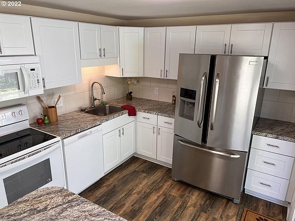 Lovely Updated and remodeled Peppertree home with 3 bedrooms, 1 1/2 bathrooms and full 2 car garage. Wood burning fireplace. Brand new LVP flooring throughout! Fabulous white kitchen with new cabinets, counters, tile backsplash, white appliances and stainless refrigerator. Bar counter. Large covered deck and fenced backyard with shed. All new light fixtures, hardware, closet doors, and more! Quality workmanship in this light and bright home close to schools, shopping, bus.