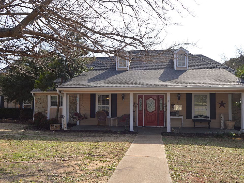 3 Bedrooms 2 Bath Farm house style home on a 1.12 Acre Corner Lot with big trees--mulberry, pecan, cedar, pine, and Elm for sale. House is quaint with custom built-ins and lots of character! It has incredible amount of storage with two large attics (one completely floored) Property is fenced for a horse and has a well used for a full irrigation system on the property. Utility Room & Pantry--room for freezer or extra fridge, lots of open shelving for pantry and extra built in cabinet for storage. Sunroom, can be used as second dining and-or office-sitting area--huge windows, custom crackle finish, ship lap on walls. Home Office--custom made cabinets with filing and surplus storage, with superior? Counter.